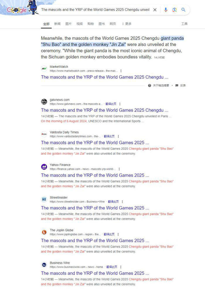 成都世运会吉祥物在巴黎揭幕