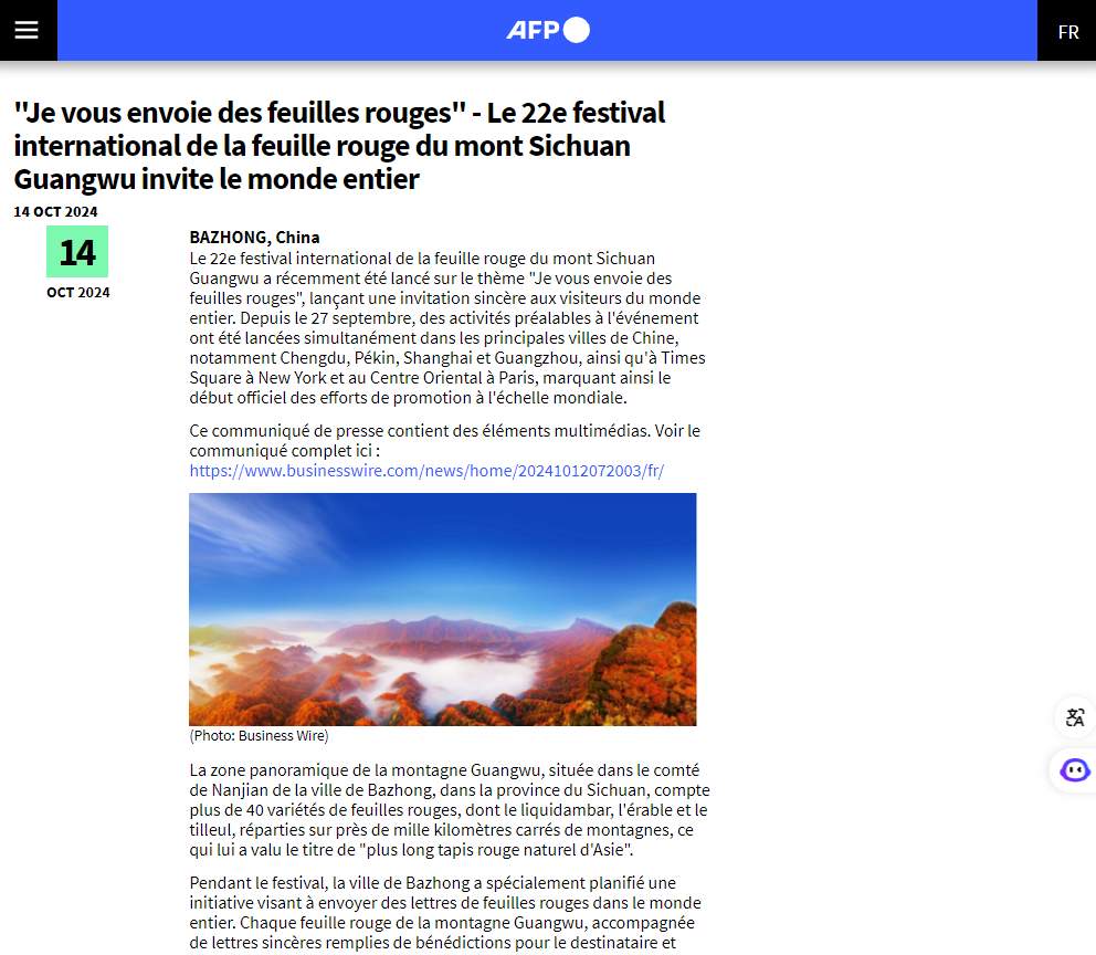四川光雾山国际红叶节海外媒体传播案例